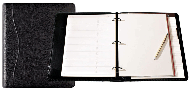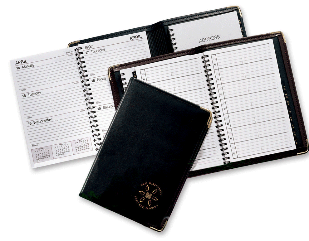 Colors: Black, British Tan, Red (new), Blue (new) Insert/Refill Types: Wire-Bound Blank, Wire-Bound Ruled, Wire-Bound Address Book, Case-Bound Address Book, Wire-Bound Weekly Calendar